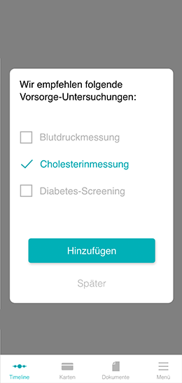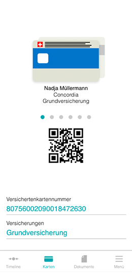 Eine App für Privatpersonen, welche die wichtigsten Termine und Eckdaten übersichtlich bereithält. So können Patienten künftig ihre Versichertenkarte digital vorweisen und mit QR Code im Spital einchecken sowie Termine mit Spitälern direkt digital vereinbaren.